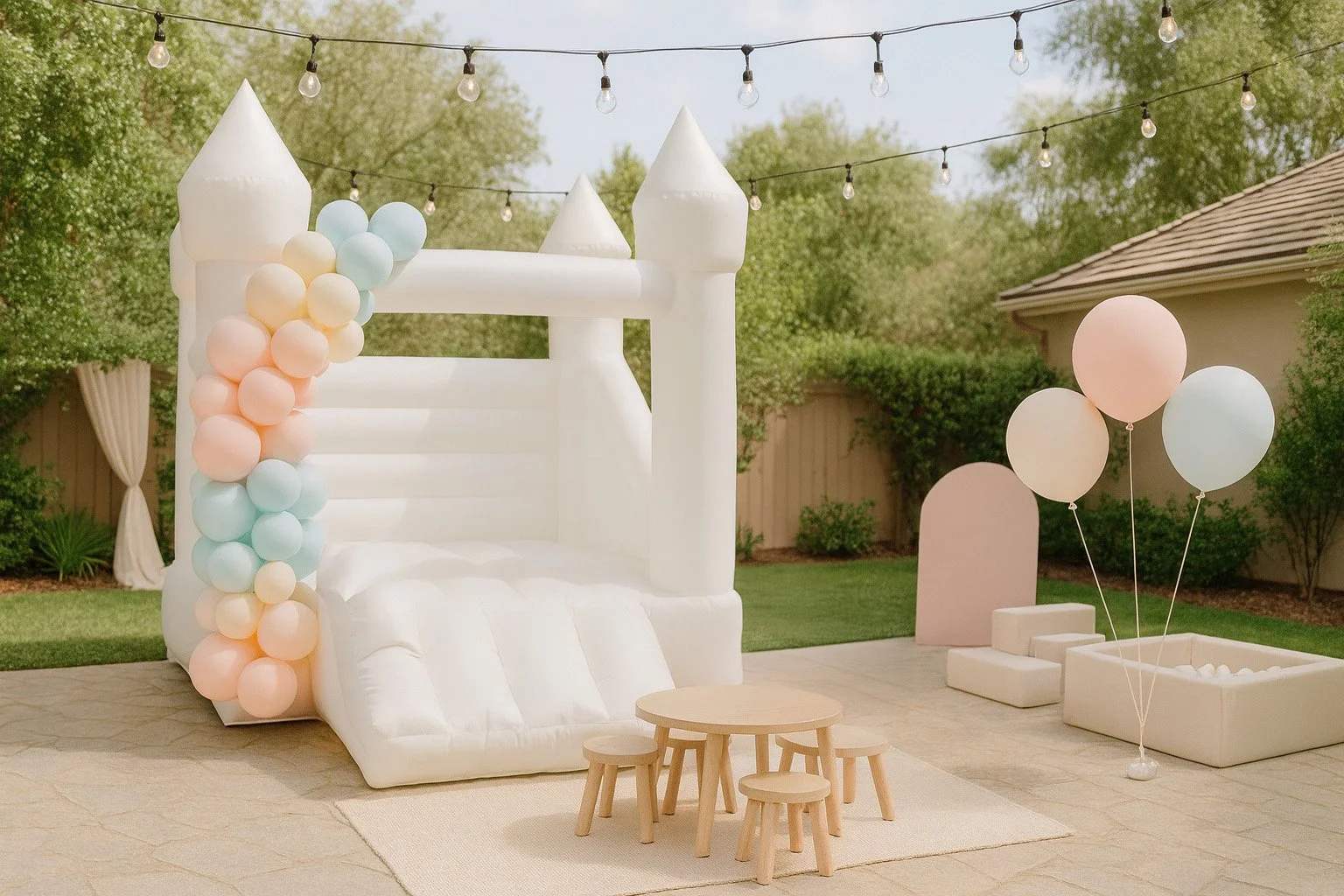 Our all-white inflatable castles bring joy to your little ones and effortless beauty to your celebration. Each castle is selected to fit different celebration sizes, always maintaining our signature clean, photogenic look. Whether it's your toddler's first bounce or an epic backyard gathering, we’ve got a castle to match.